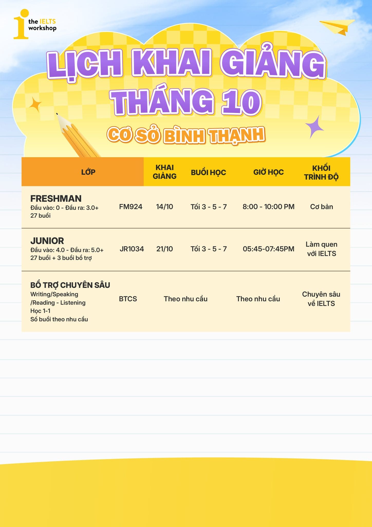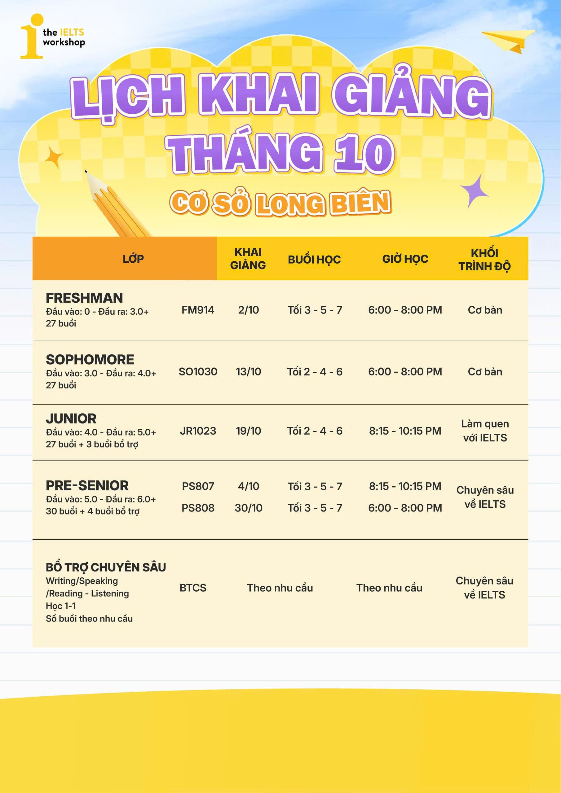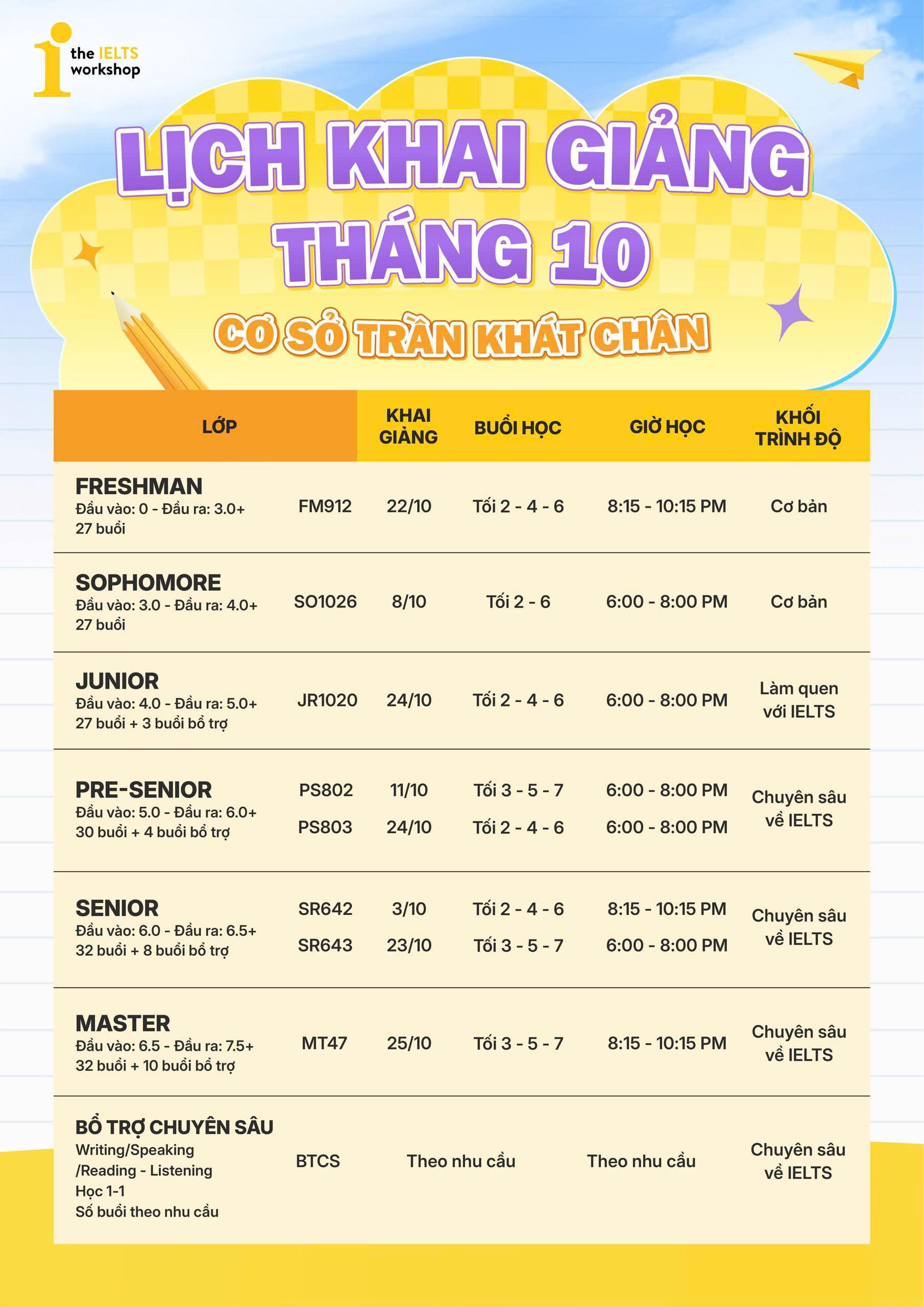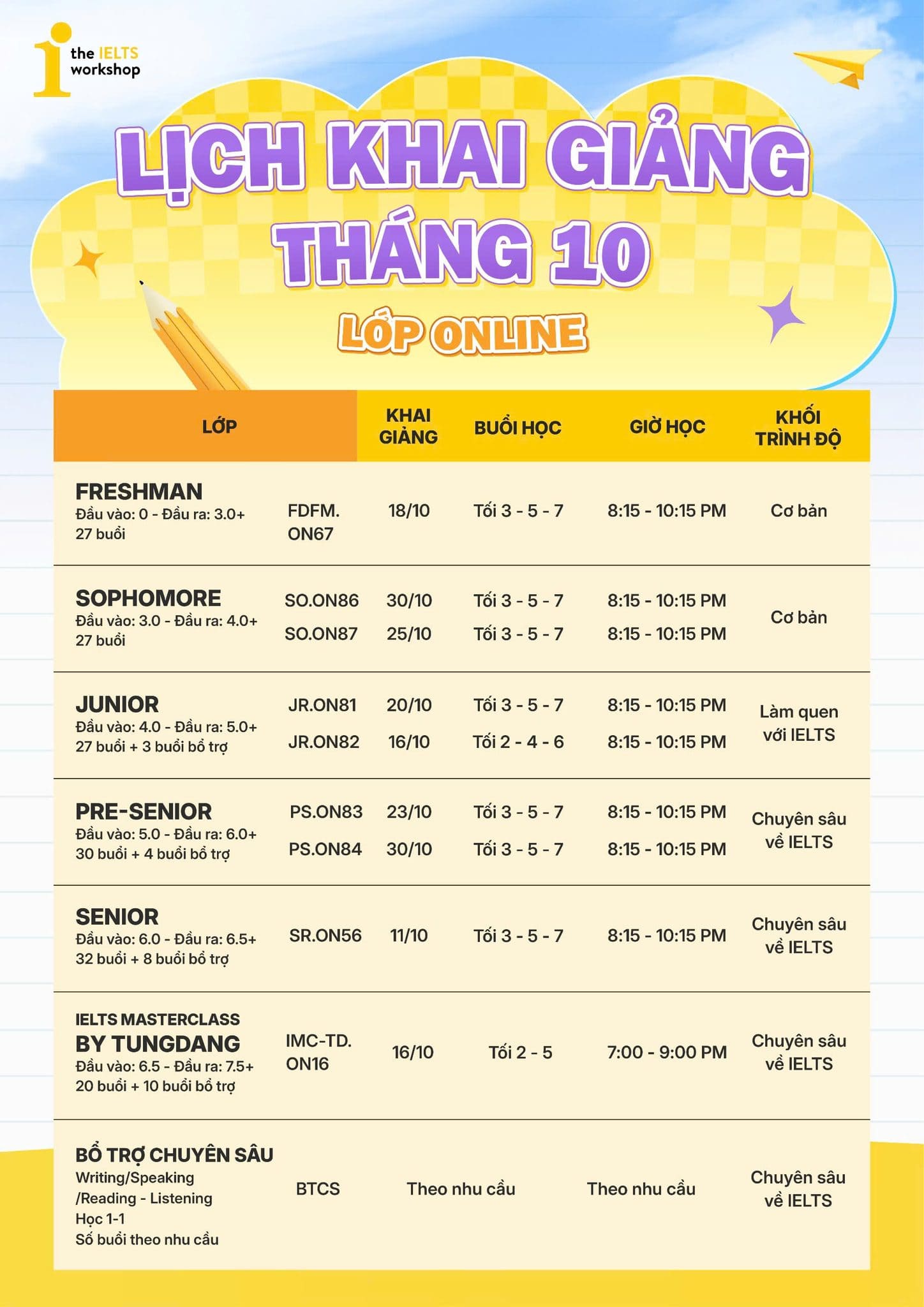 Lịch khai giảng các khóa học IELTS trên toàn quốc được cập nhật hàng tháng