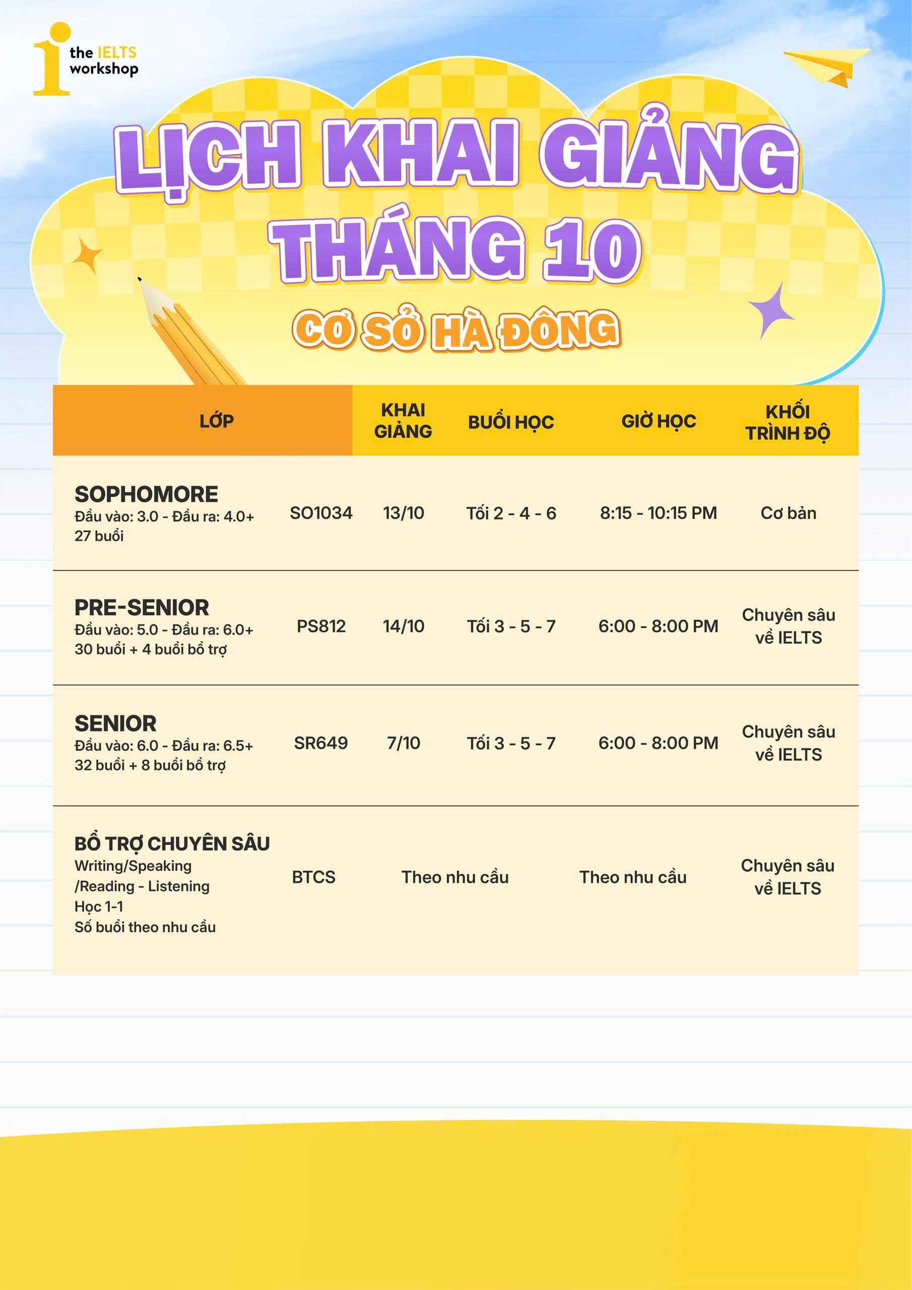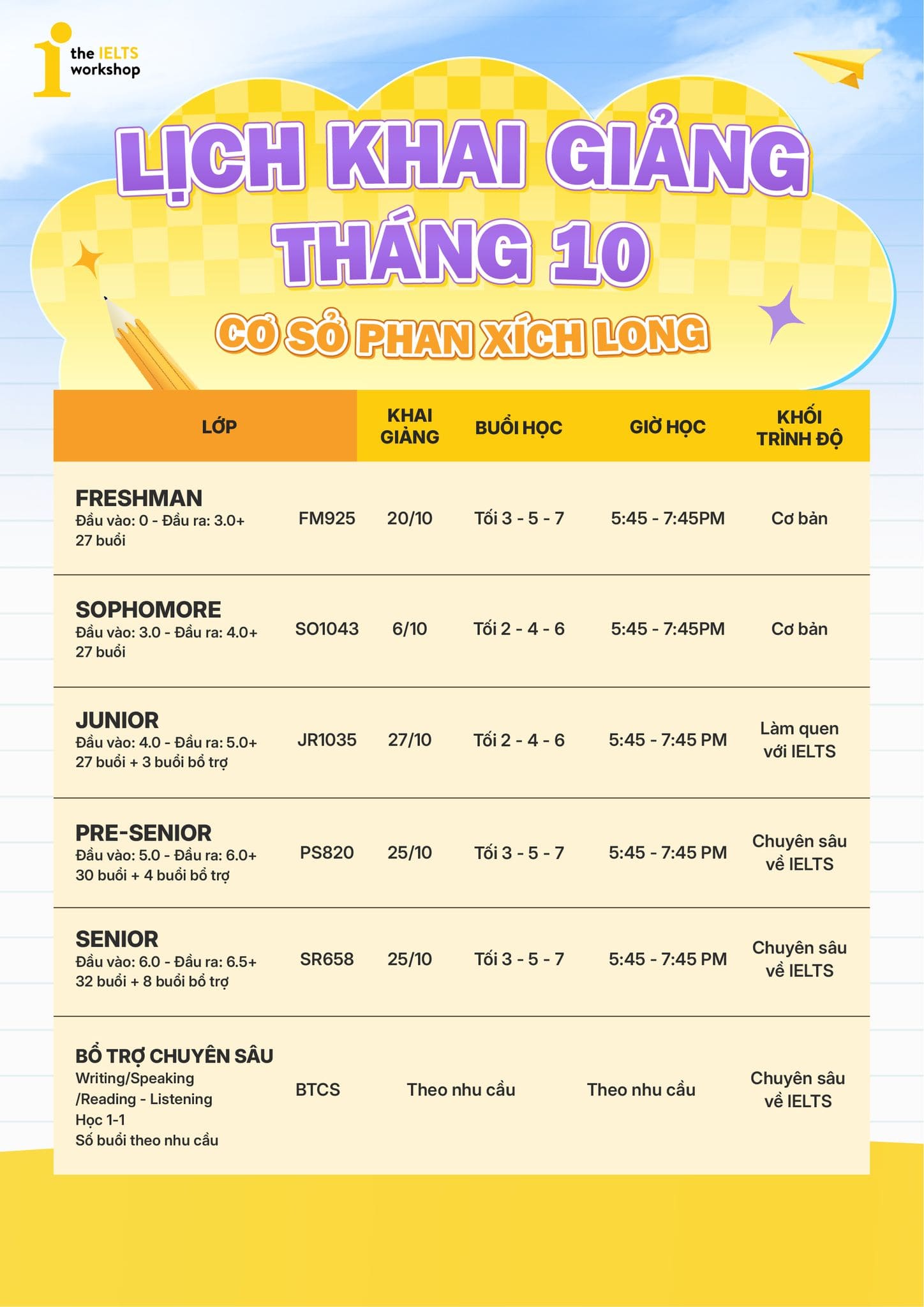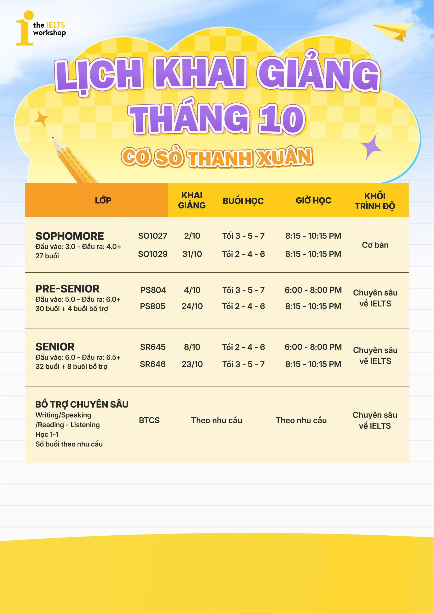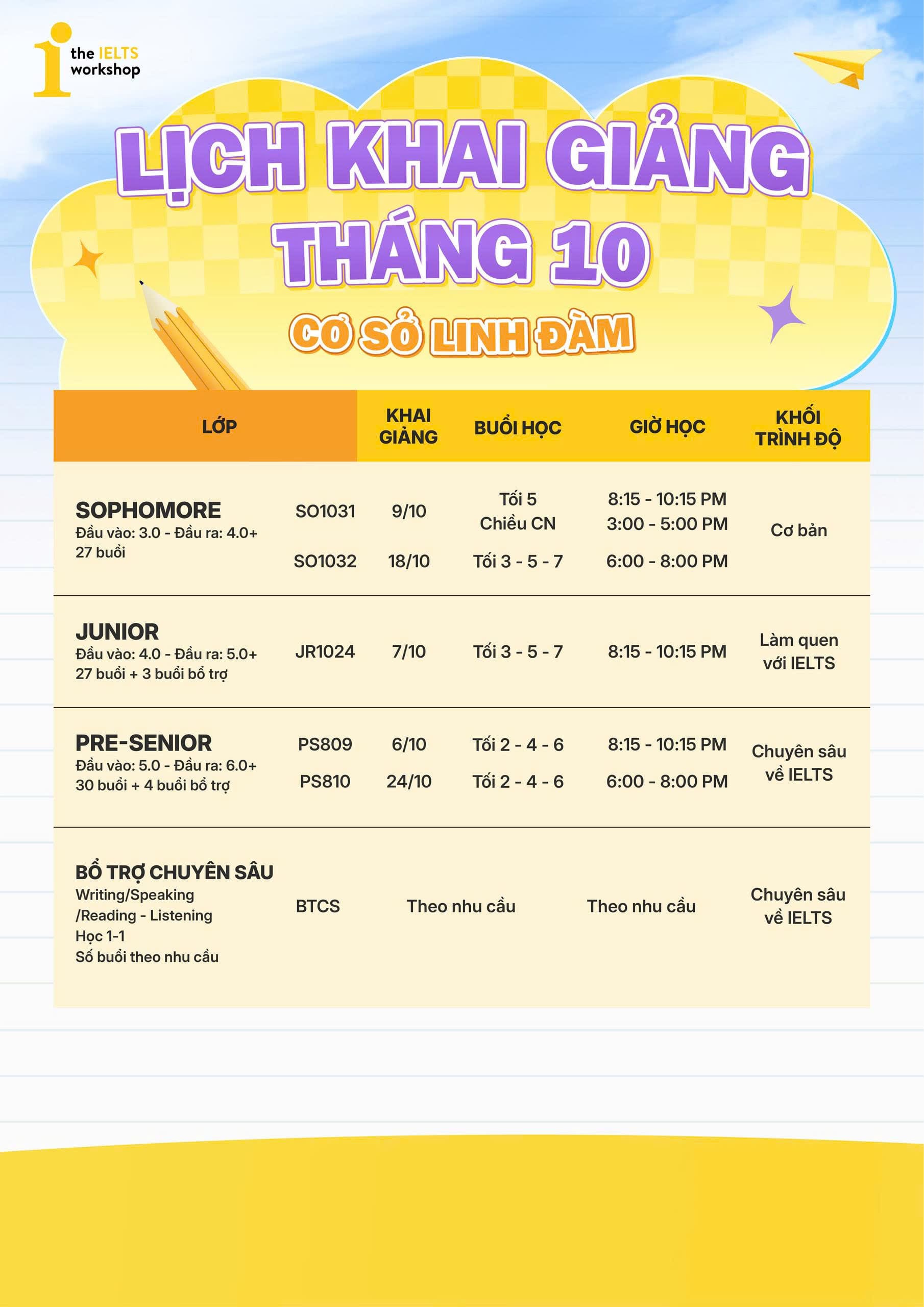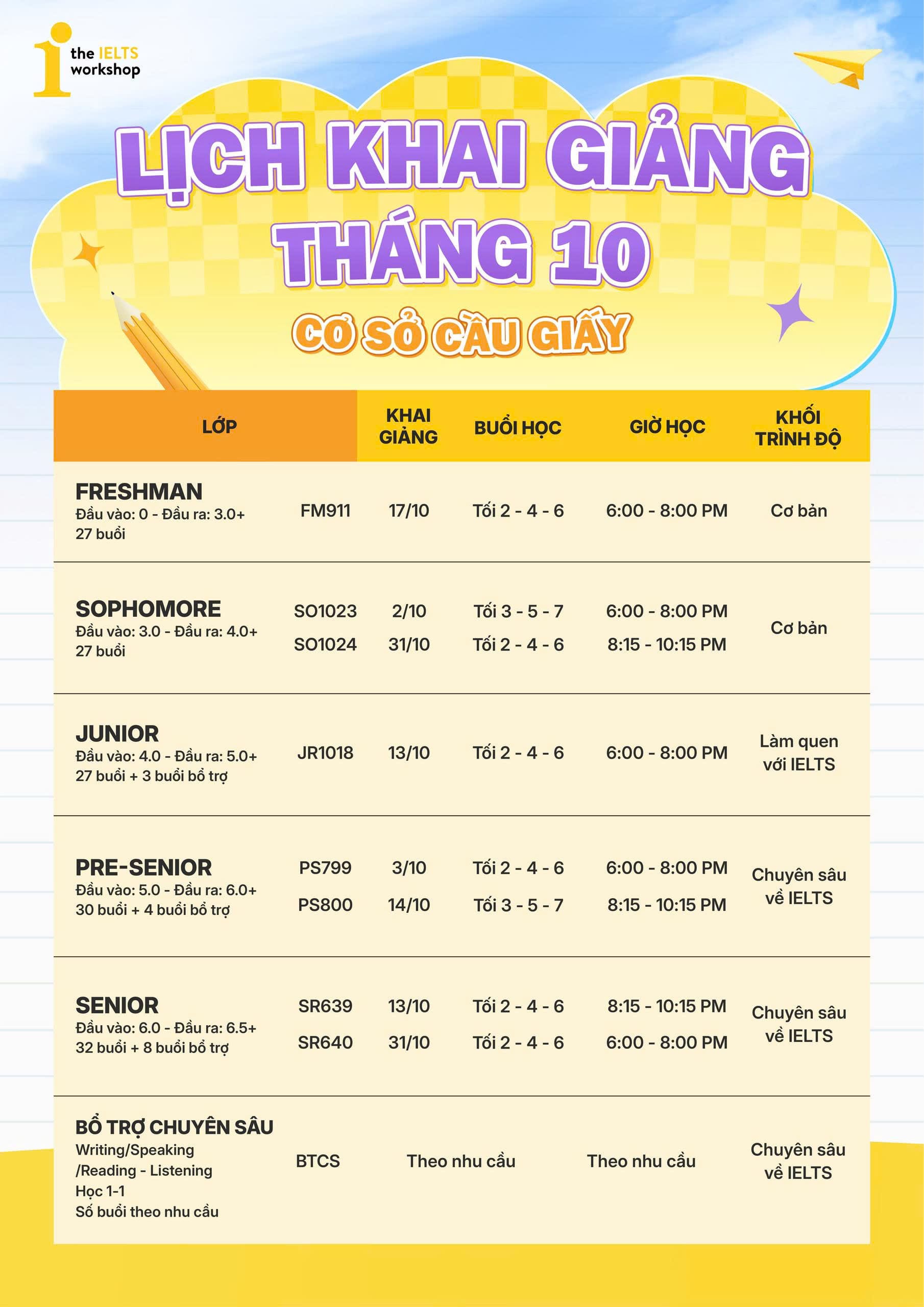 Lịch khai giảng các khóa học IELTS trên toàn quốc được cập nhật hàng tháng
