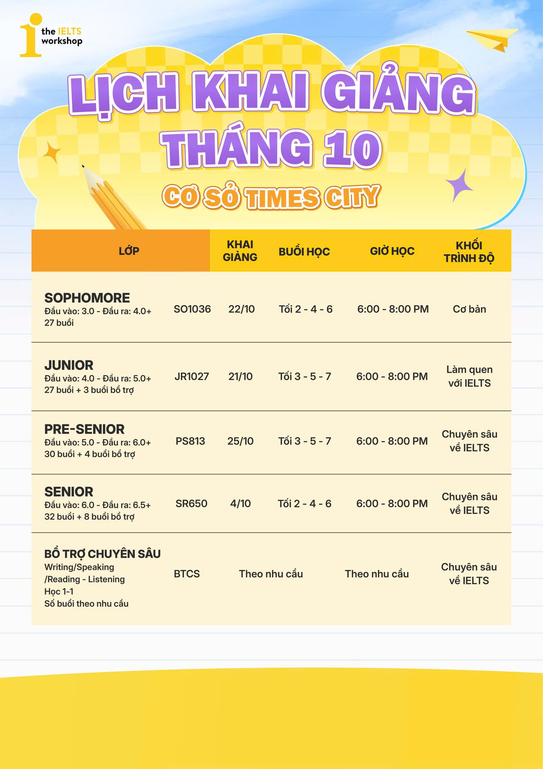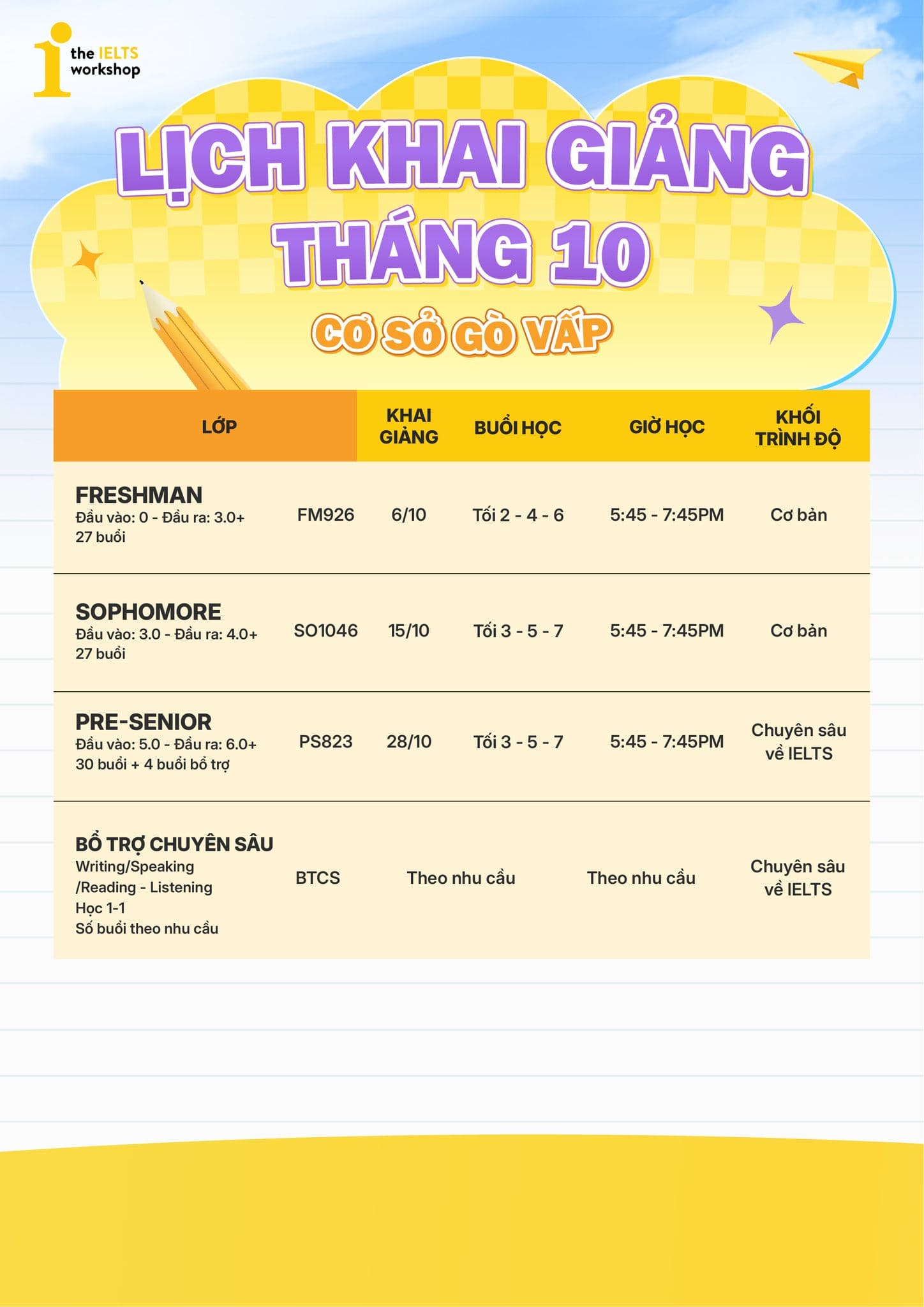 Đội ngũ The IELTS Workshop sẽ liên lạc lại với bạn sớm nhất. Trong trường hợp bạn có câu hỏi hoặc cần trợ giúp gấp, bạn có thể liên hệ với chúng tôi theo hotline 1900 0353.